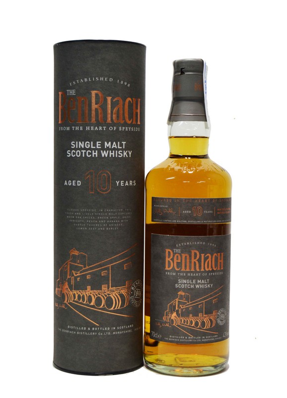 Establecido en 1898, Benriach es una de las pocas destilerías que realizan el malteado de la cebada en el sitio. Benriach 10 Años Classic Speyside utiliza una cebada malteada fuertemente ahumada para dar un distintivo sabor turboso combinado con un fondo de dulces notas frutales.