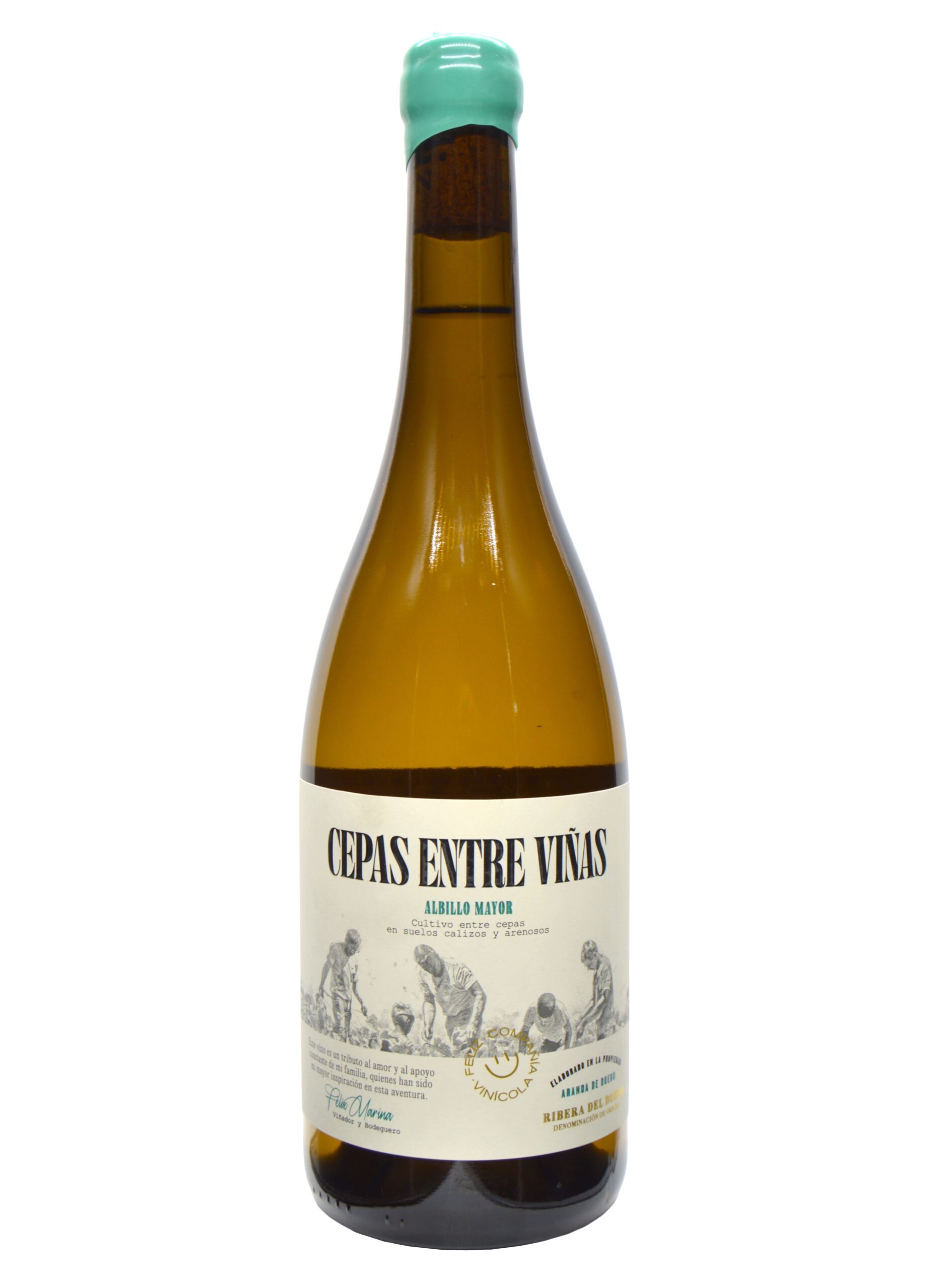 Cepas Entre Viñas Albillo Mayor se le dedicamos a los viticultores, que no arrancaron las cepas centenarias de Albillo Mayor, esas pocas cepas entre los grandes viñedos de tinta fina de la Ribera del Duero. Ellos siguen haciéndonos Feliz, con doce meses de barrica y seis de gres de barro, es la niña bonita de la bodega, es un vino que tiene mucho que expresar.