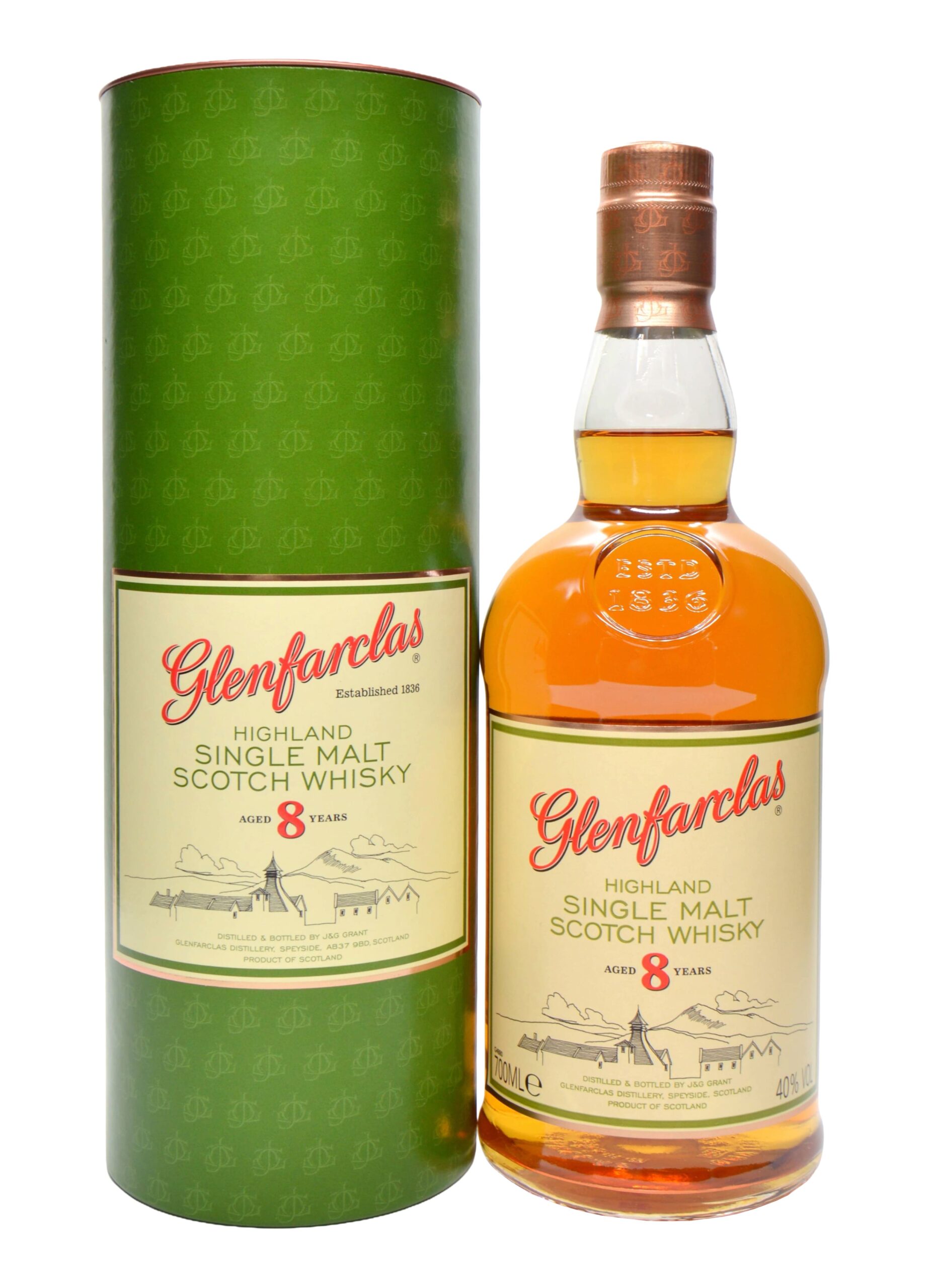 Glenfarclas 8 Years Old, esto no es solo una botella de whisky de malta de 8 años. Es el resultado de más de 185 años de tradición y experiencia, de secretos transmitidos y cultivados durante cinco generaciones de la familia en el corazón de Speyside.