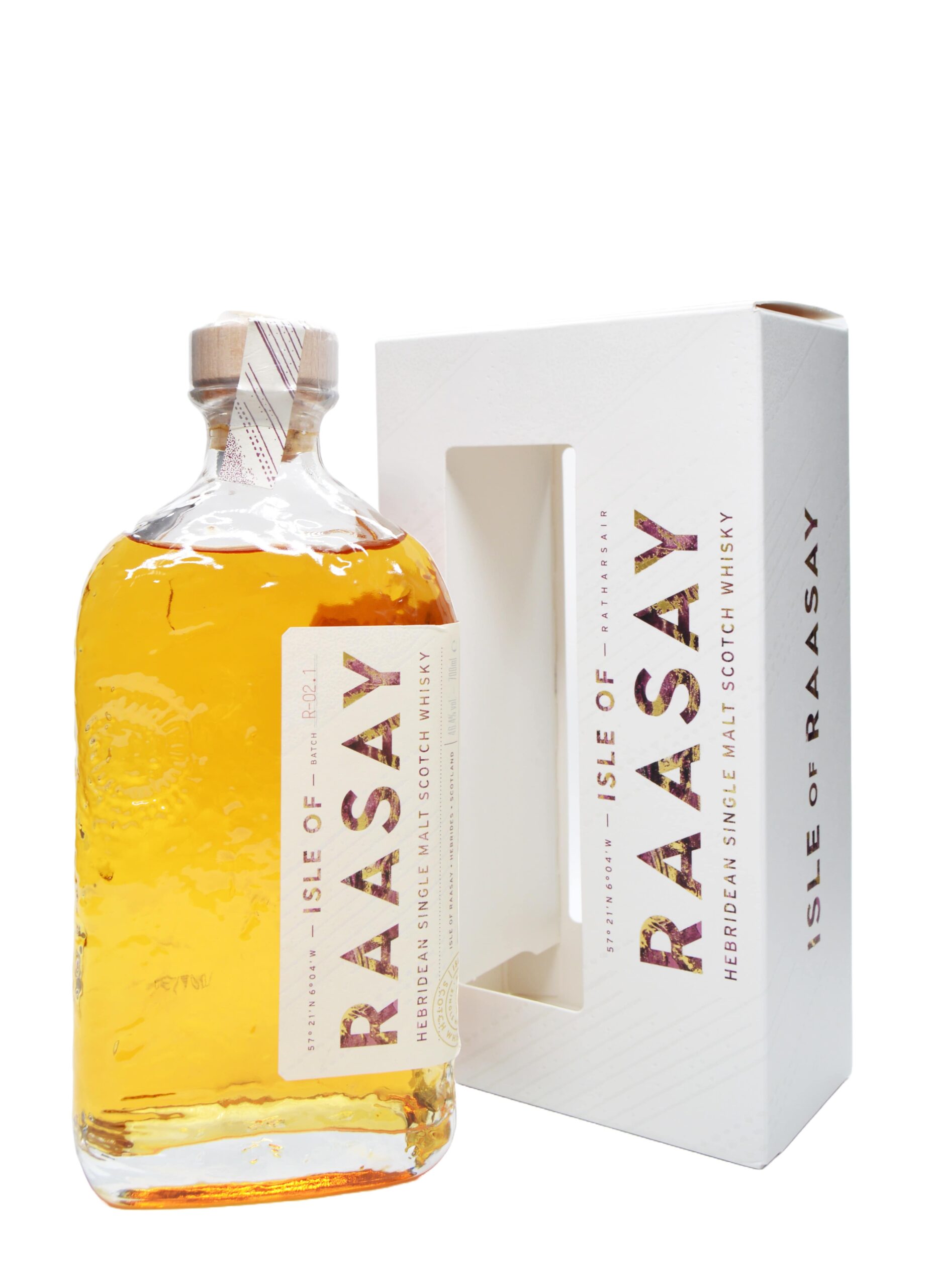 Isle of Raasay Hebridean Single Malt es un whisky escocés elaborado a partir de dos aguardientes de la Isla de Raasay, con y sin turba. Se maduran por separado en barricas de whisky de centeno americano, roble Chinkapin fresco y barricas de vino tinto de Burdeos de primer llenado. Cada gota se destila, madura, embotella y envía directamente desde Raasay.