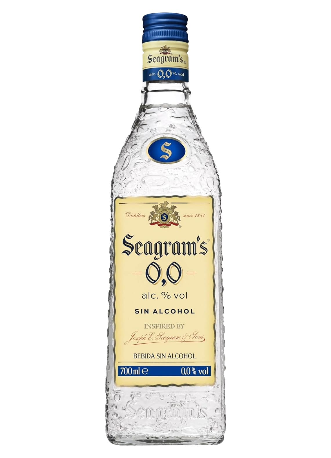 Elaborada con los mismos botánicos que Dry Gin, Seagram’s 0,0% es una bebida sin alcohol que luce un ligero color oro y un aroma suave a cítricos, botánicos y hierbas de tocador. Mantiene un sabor clásico que combina notas de enebro con toques herbáceos.